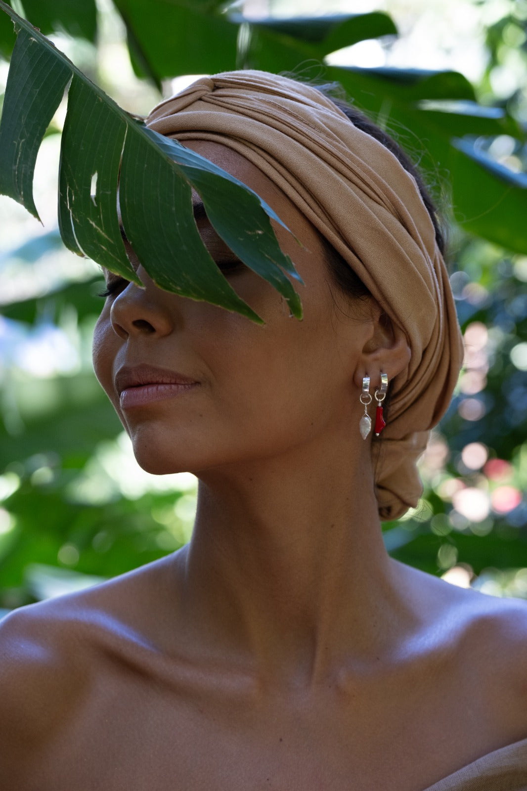 - Descrição: Brinco Duplo, um de pérolas e um de coral sol, feito em prata 925.