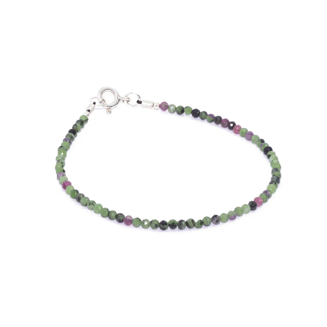 - Descrição: Pulseira de pedras zoisita com acabamento de prata 925.