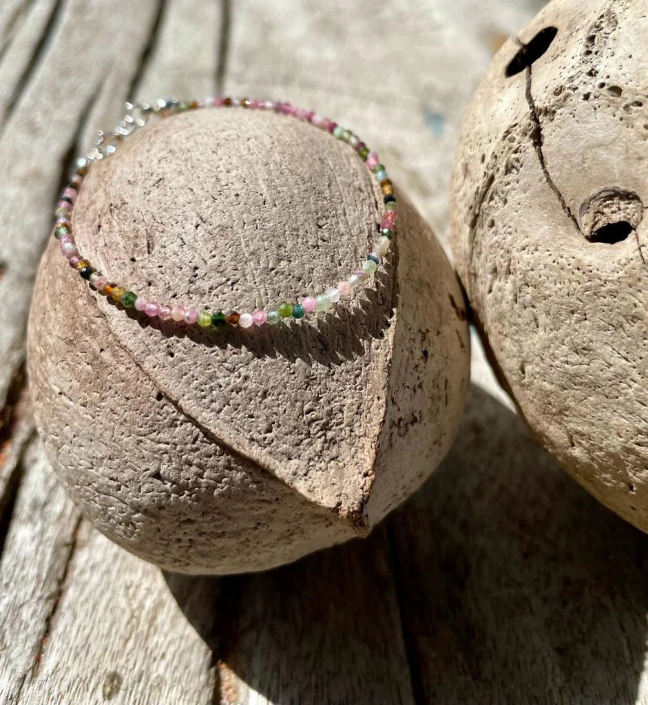 - Descrição: Pulseira de pedras turmalina com acabamento de prata 925.