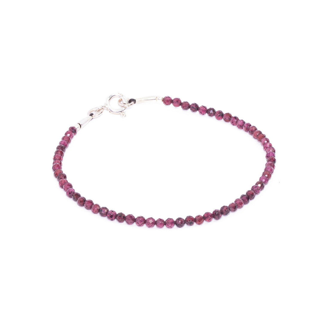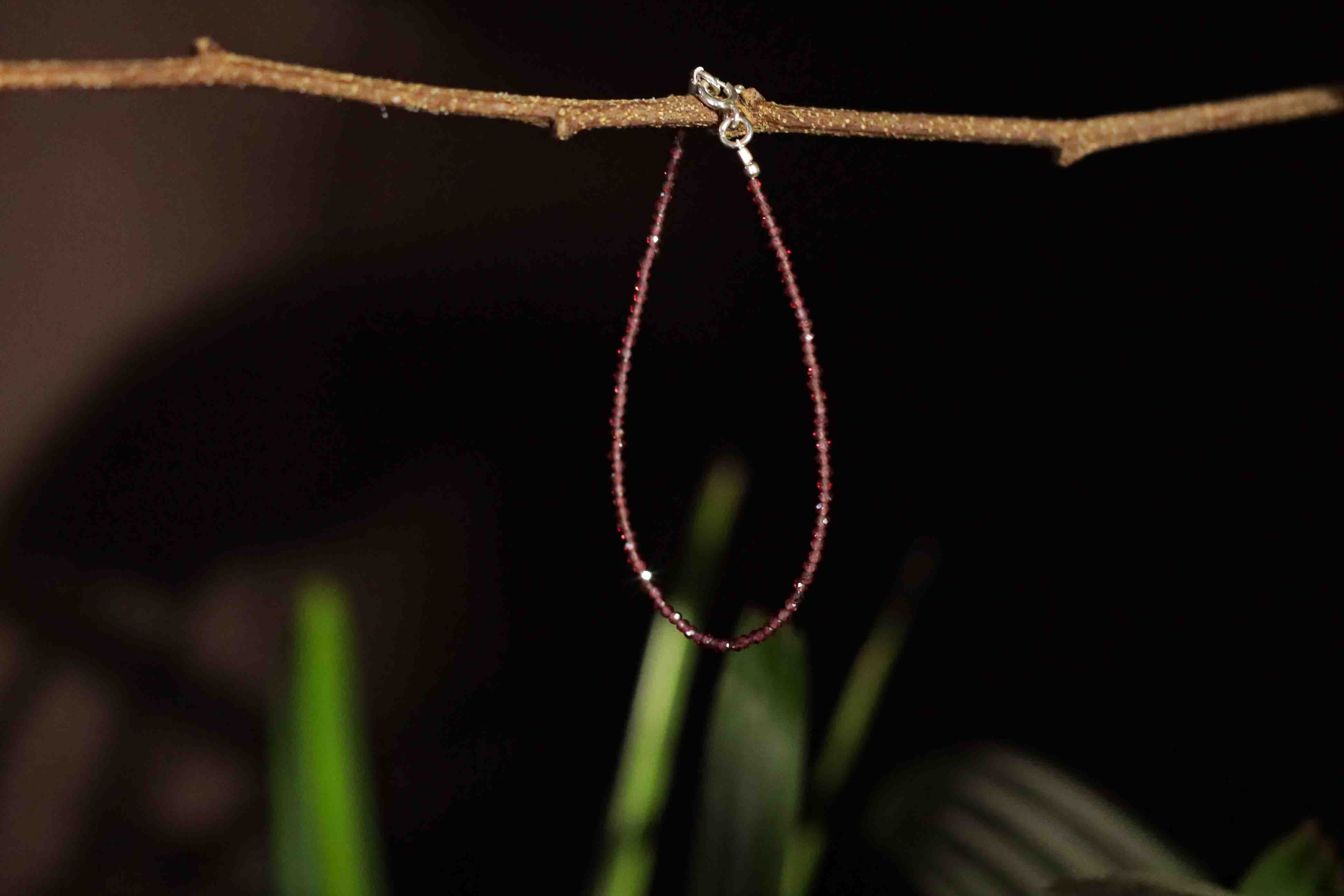 • Descrição: Pulseira de pedras granada com acabamento de prata 925.
