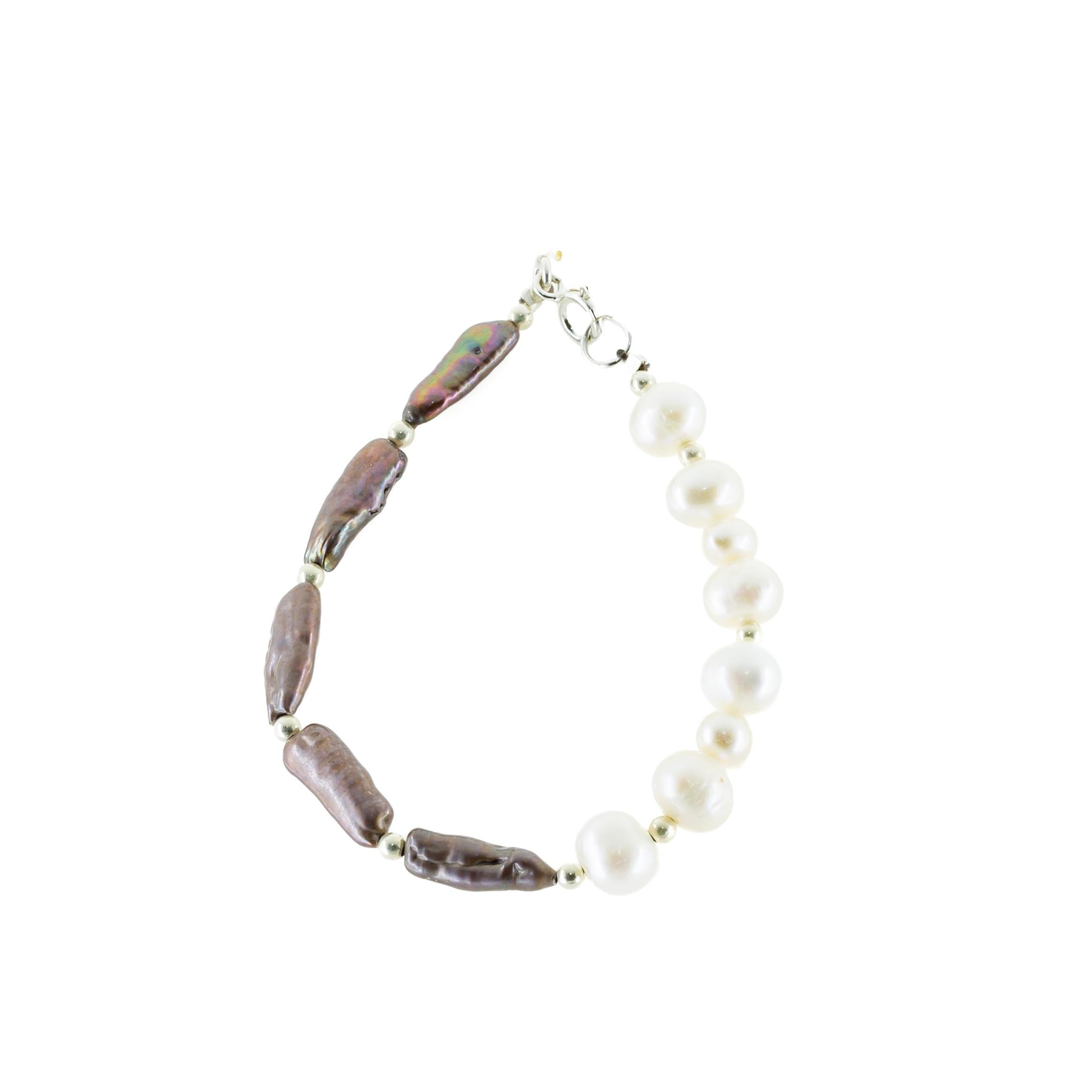 - Descrição: Pulseira de perolas e pérolas marrons com acabamento em prata 925
