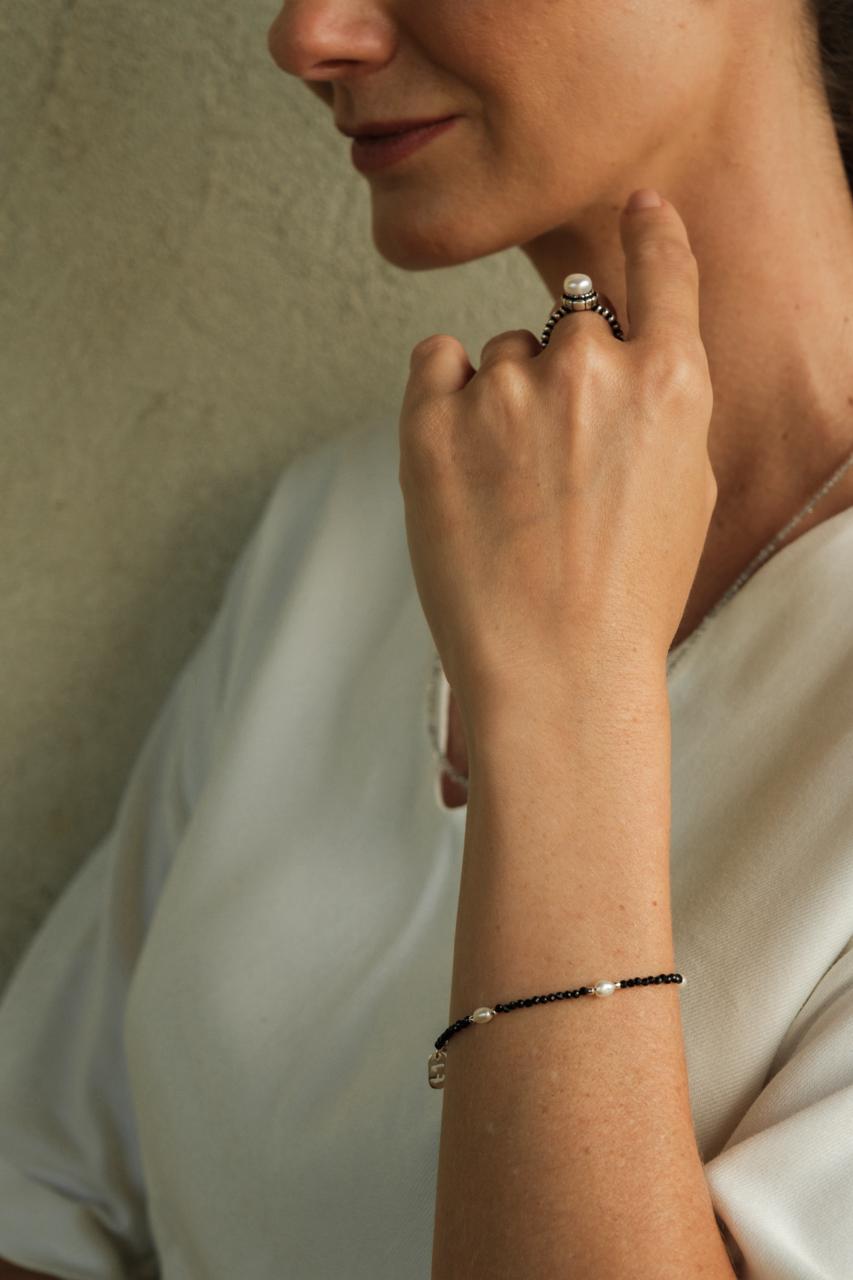 • Descrição: Pulseira com pedras ônix e pérolas.