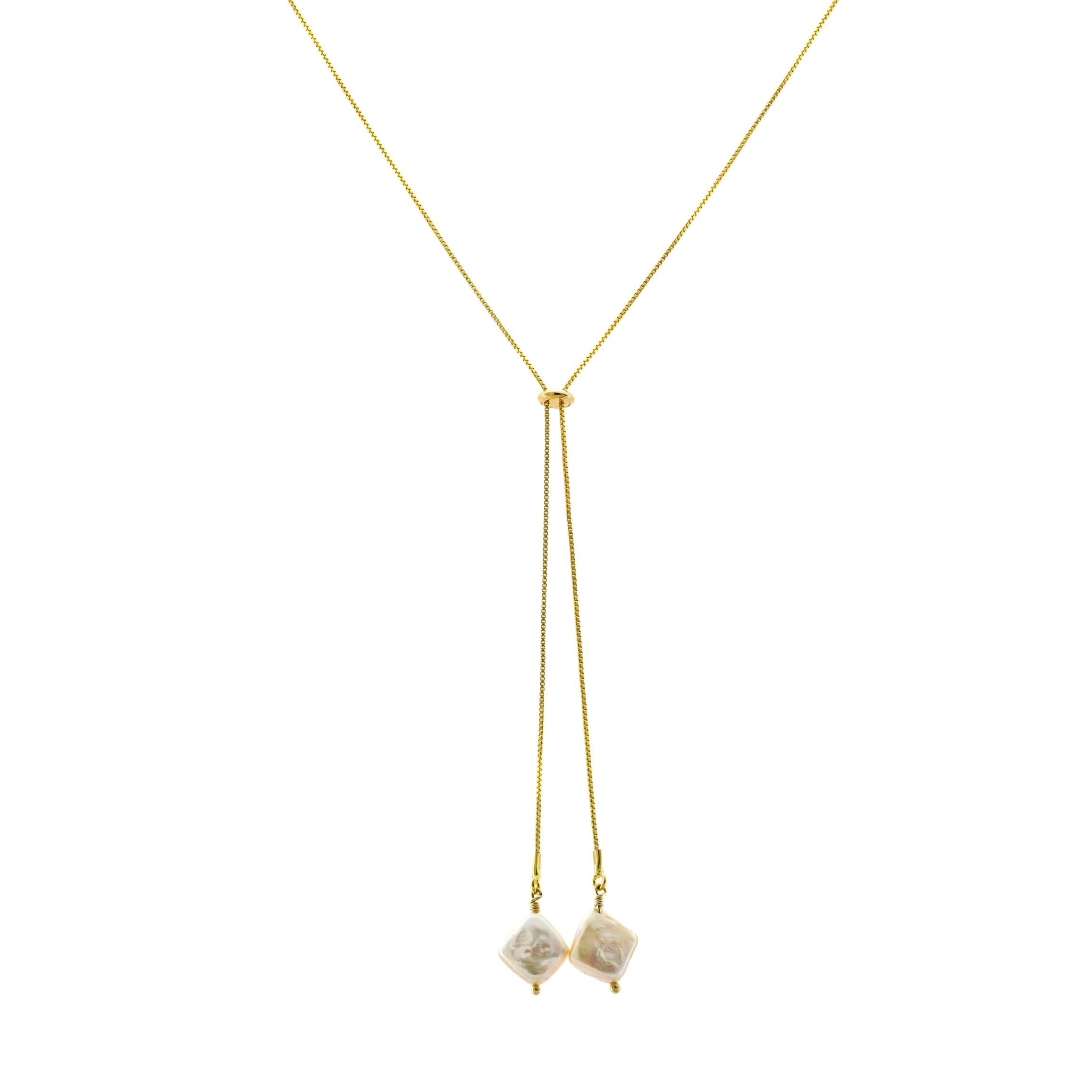 - Descrição: Colar de corrente veneziana em prata banhada a ouro 18K, com duas pérolas.