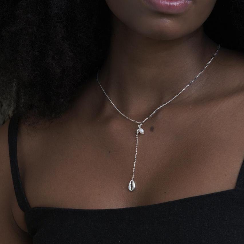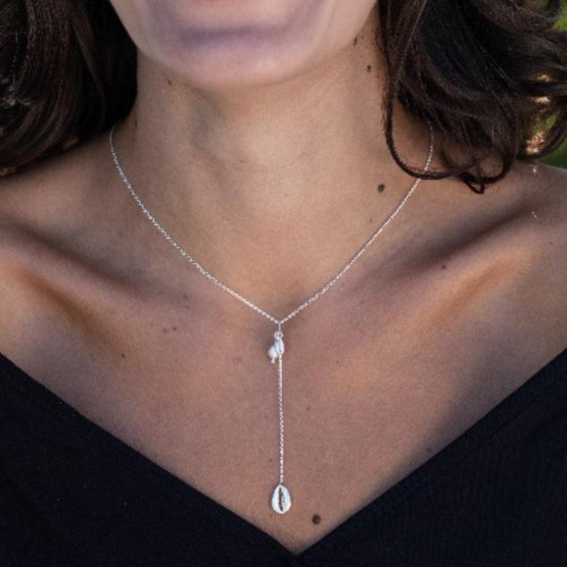 • Descrição: Corrente elos de prata 925 com búzio e pérola de pingentes.