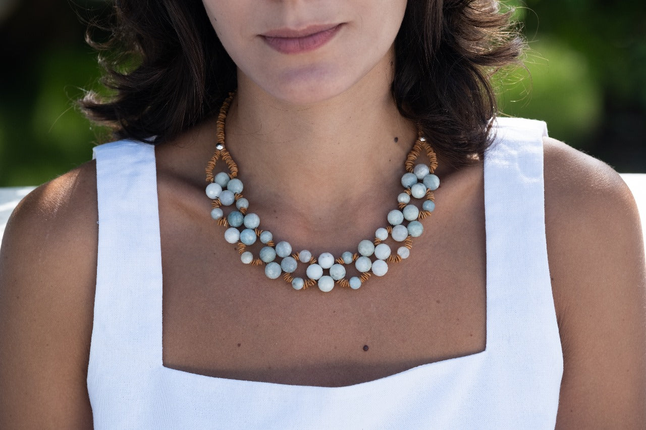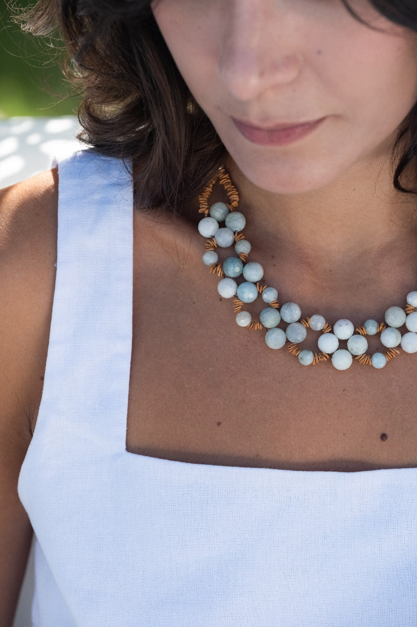 • Descrição: Colar de pedras amazonita com sementes morototó.