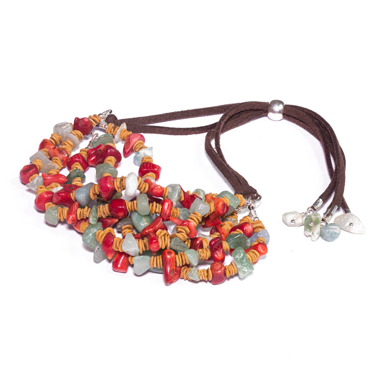 - Descrição: Pulseira de quartzo verde, coral sol e semente moro toró com acabamento em prata 925.