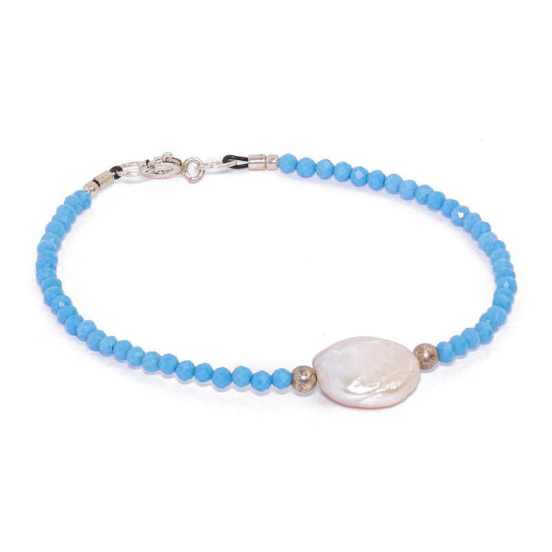 • Descrição: Pulseira de pedras turquesa, prata 925 e pérolas.